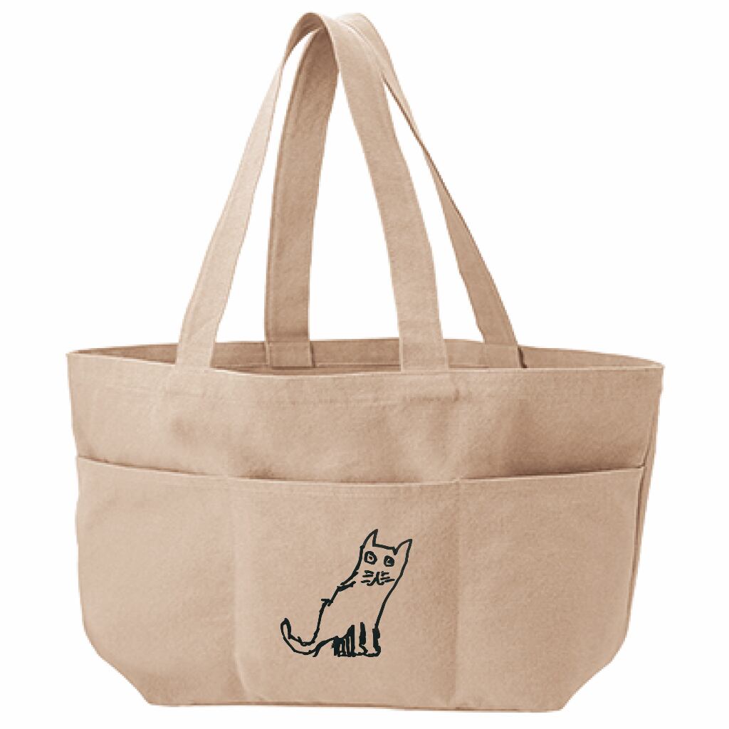 何とも言えないかわいさを纏った猫のイラストのトートバッグ トートバッグは広めのマチを持ち、大容量の収納力が魅力です。子供とのお出掛けやピクニック、ビーチなどちょっと荷物が多い時に大活躍。