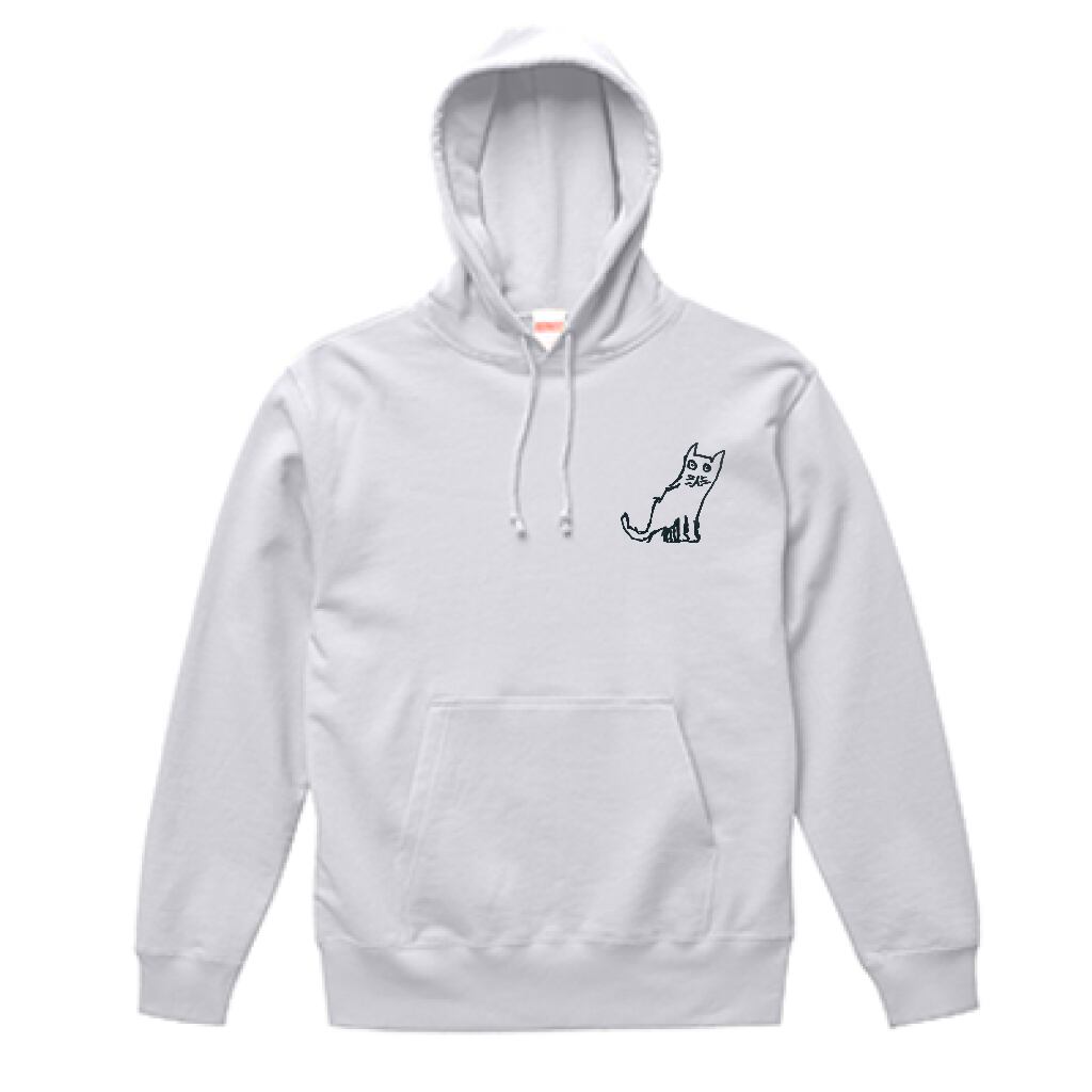 何とも言えないかわいさを纏った猫のオリジナルイラストのパーカー